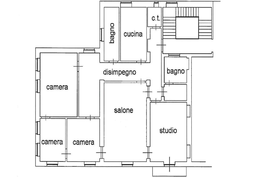 Un accogliente disimpegno introduce alla zona giorno, dove si trovano un ampio soggiorno perfetto per momenti di relax e una cucina abitabile funzionale e spaziosa. La zona notte offre quattro camere da letto di grandi dimensioni, ideali per chi desidera comfort e versatilità. I tre bagni garantiscono la massima praticità anche per nuclei familiari numerosi.