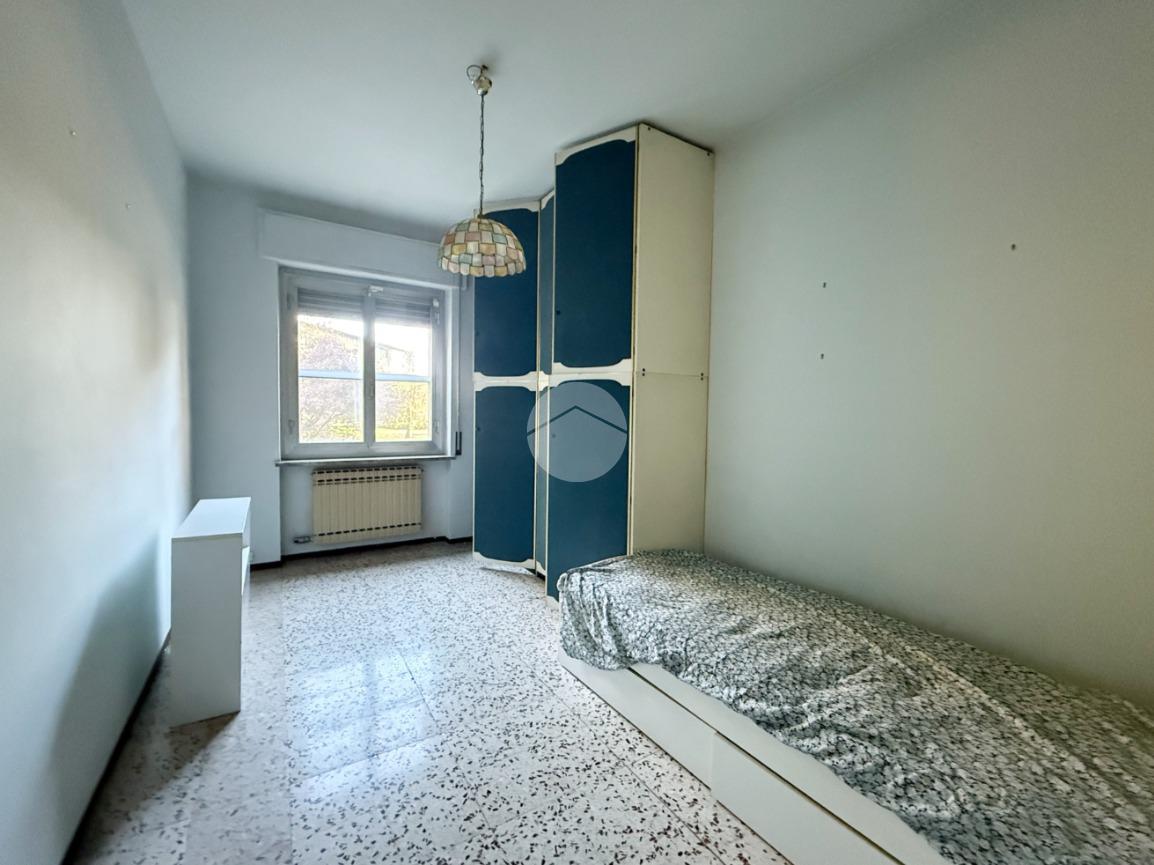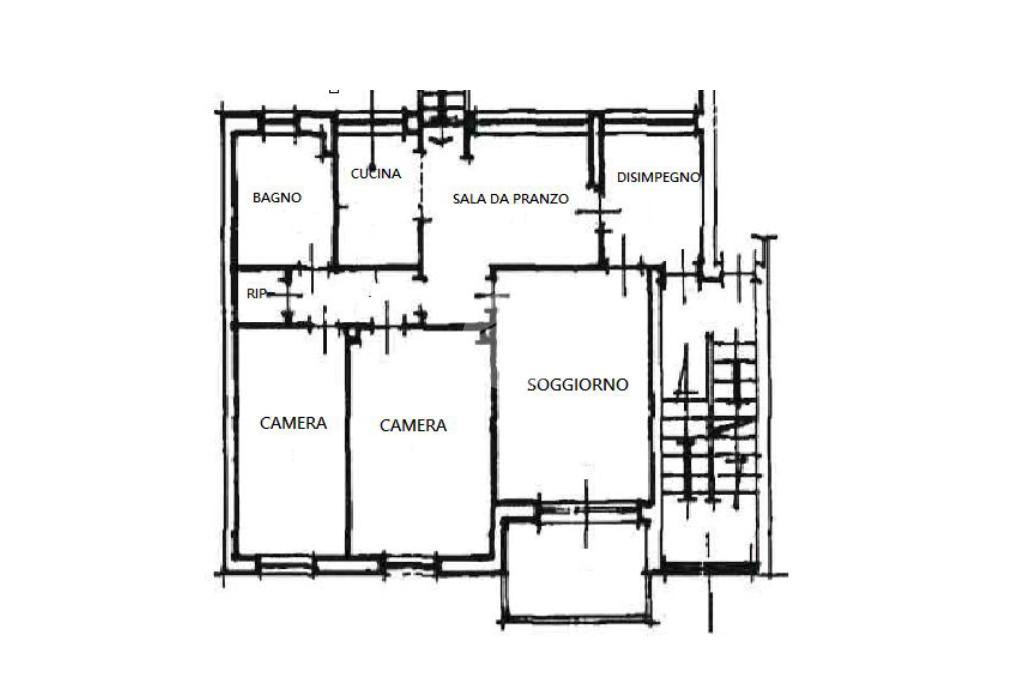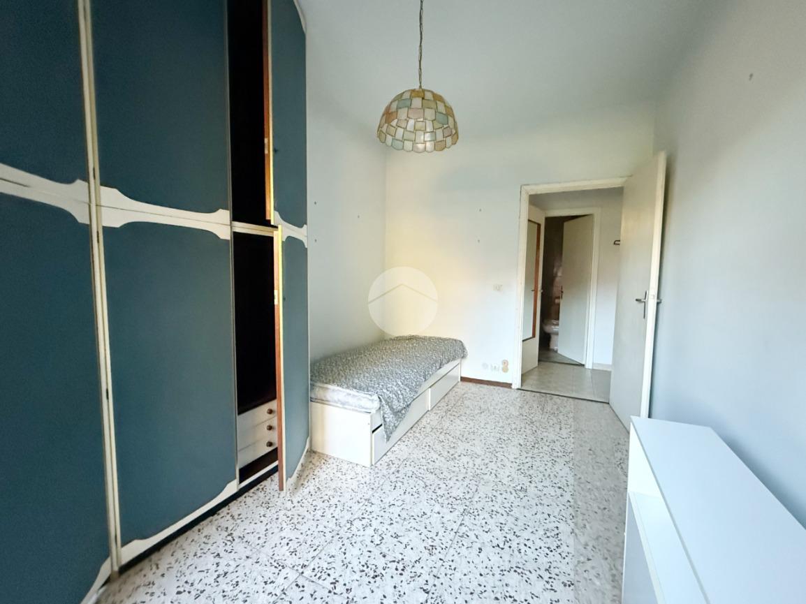 L'alloggio si apre su un disimpegno che permette l'accesso alla sala da pranzo e al soggiorno, dotato di un balcone che offre uno spazio esterno privato per momenti di relax. La cucina è separata, garantendo funzionalità e praticità.