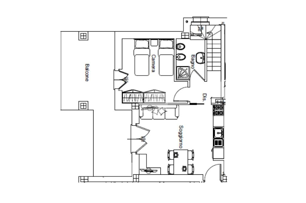L’ingresso si apre direttamente sulla luminosa zona giorno, composta da un ampio soggiorno con angolo cottura perfettamente integrato nello spazio. L’ambiente risulta arioso e ben organizzato, con una distribuzione funzionale che consente di distinguere comodamente l’area living dalla zona pranzo. Il soggiorno gode di accesso diretto al terrazzo, uno spazio esterno vivibile, ideale per pranzi all’aperto, momenti di relax o per creare una piacevole zona verde privata.