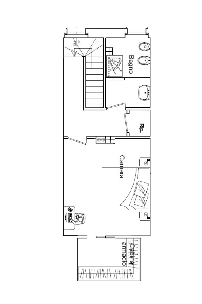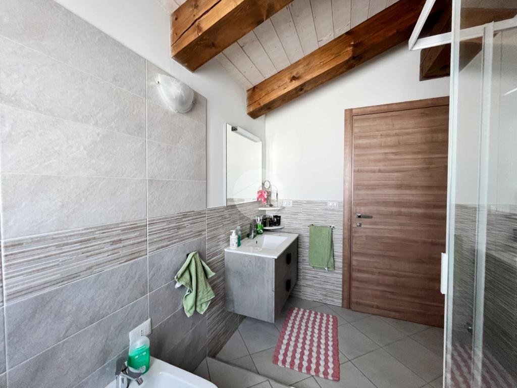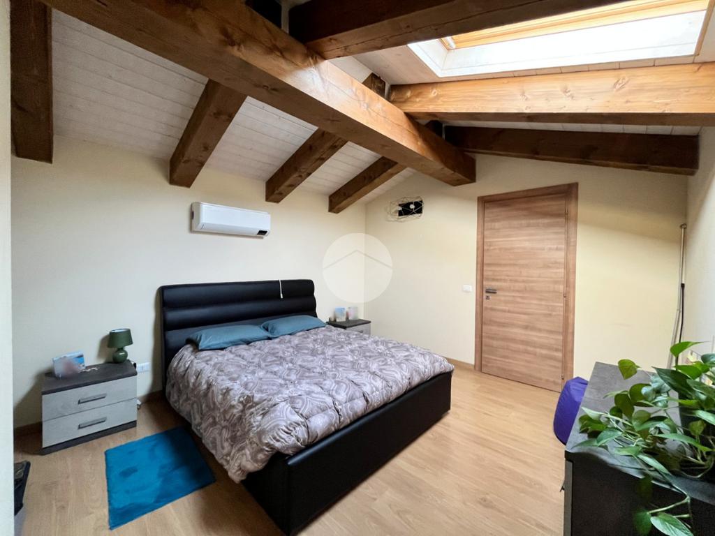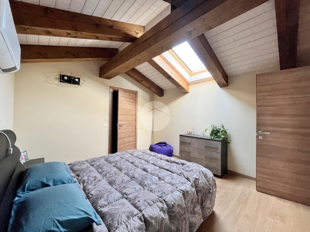 Attraverso una comoda scala interna si accede al livello superiore, dove si sviluppa la seconda camera matrimoniale, ampia e ben illuminata, impreziosita dalla presenza di una cabina armadio che garantisce ordine e funzionalità. A questo piano sono presenti anche un secondo bagno e un pratico ripostiglio, perfetto come spazio aggiuntivo per organizzare al meglio la casa.