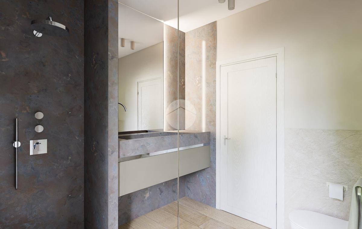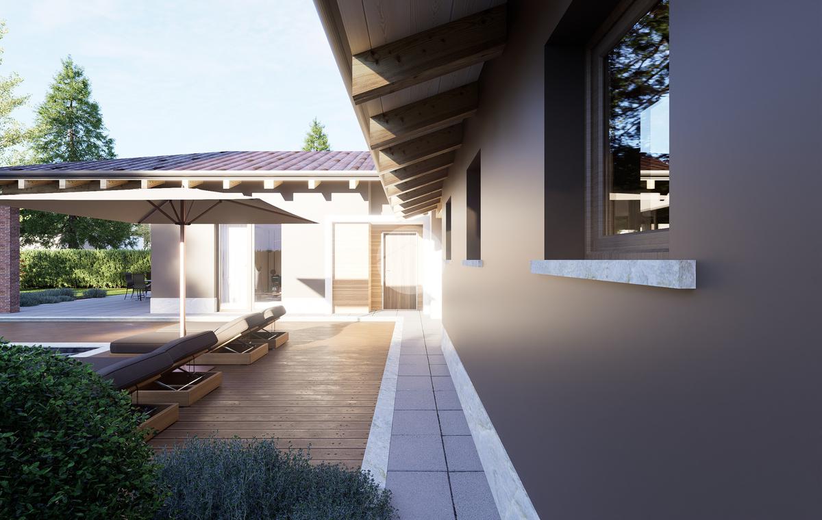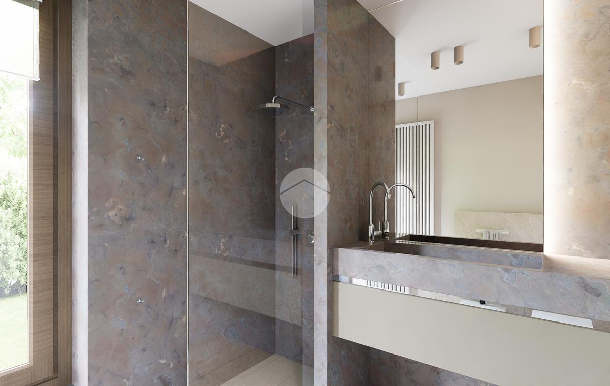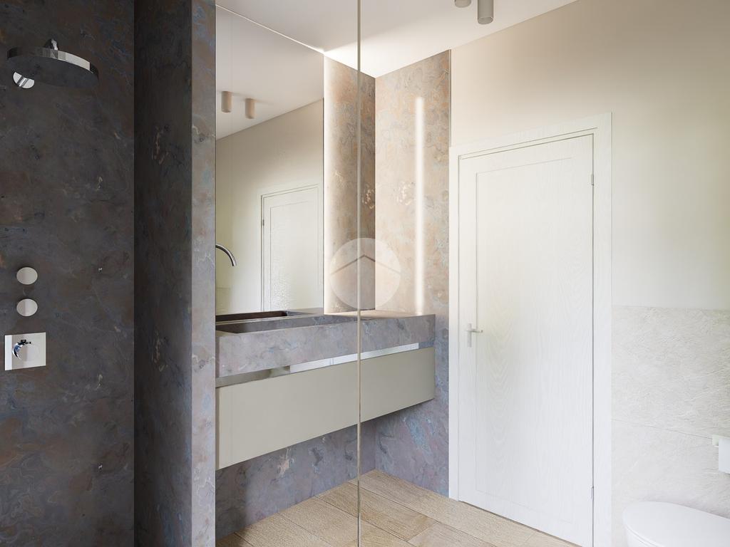 Gli interni sono caratterizzati da un design contemporaneo, con ampie finestre che assicurano luminosità naturale in ogni ambiente.