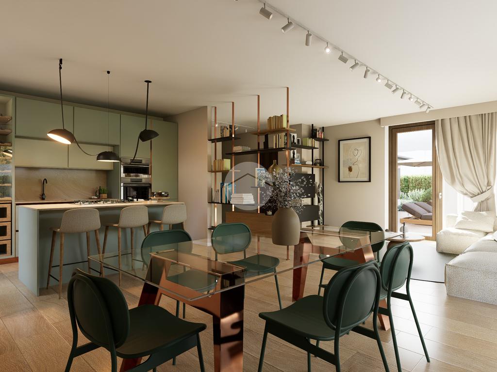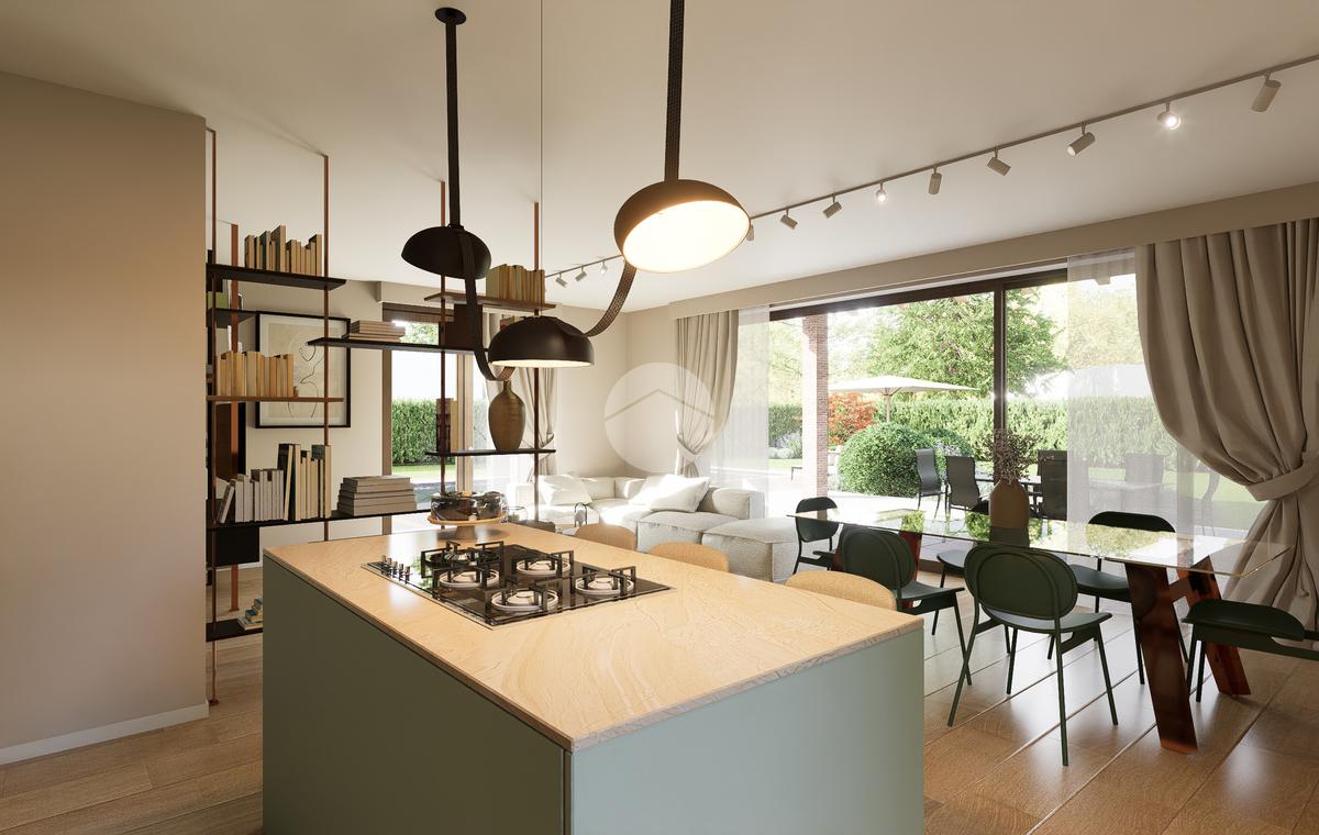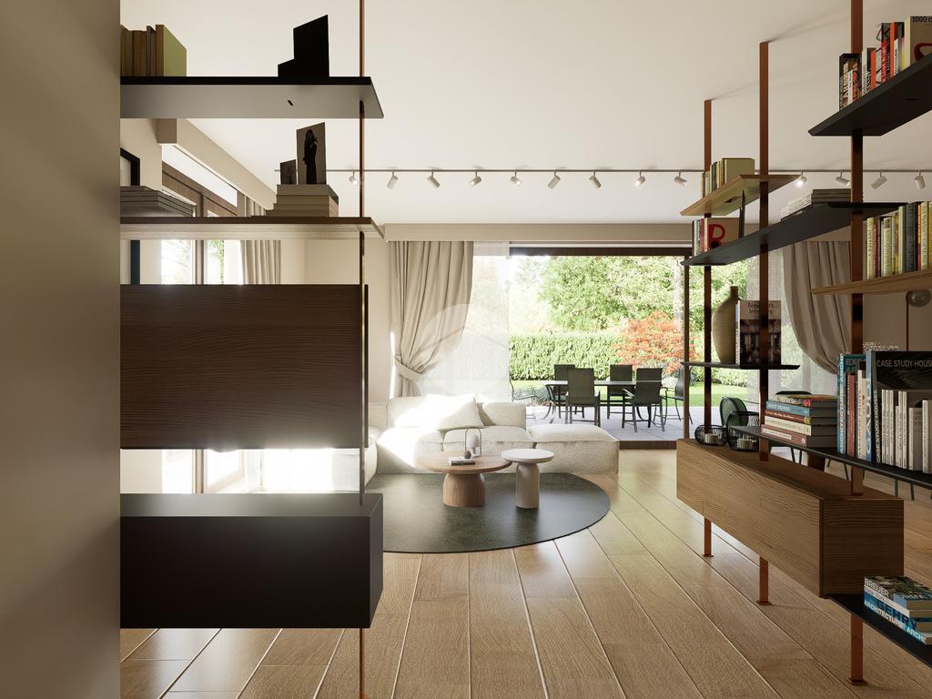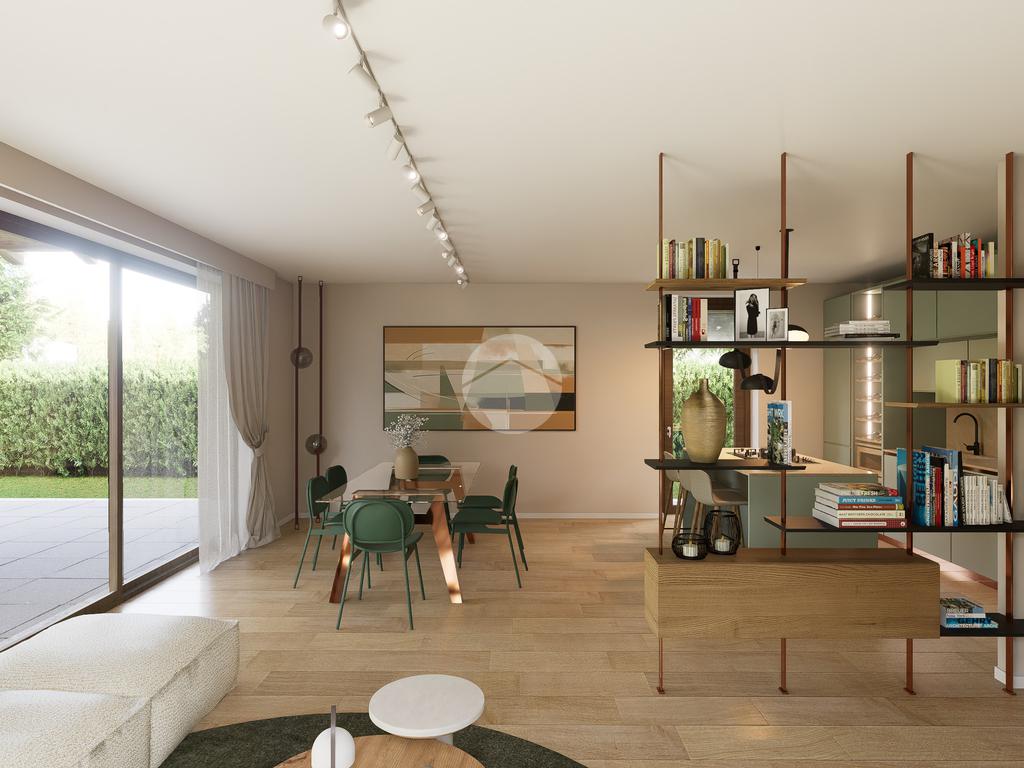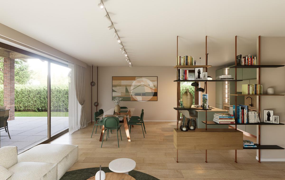 La zona giorno si apre su un giardino privato, perfetto per momenti di relax all'aperto.