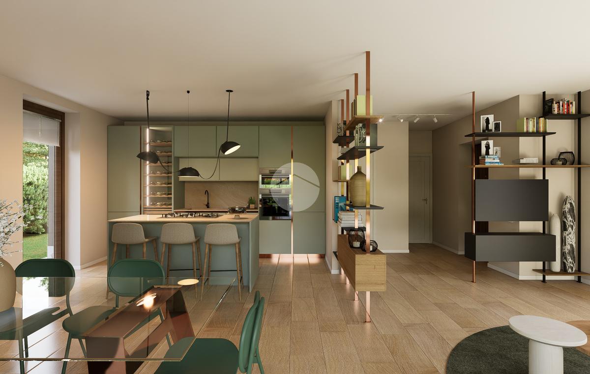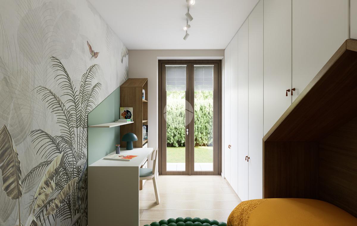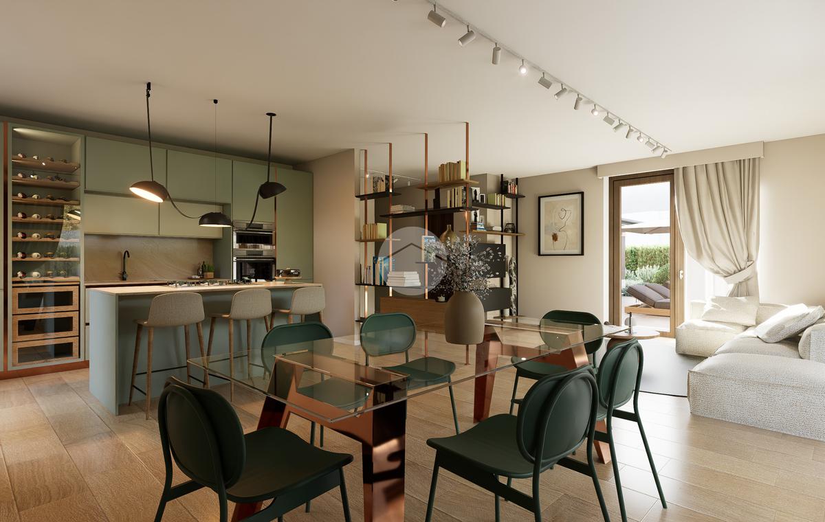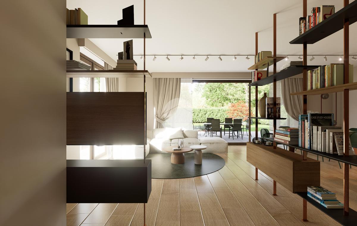 La zona giorno si apre su un giardino privato, perfetto per momenti di relax all'aperto.