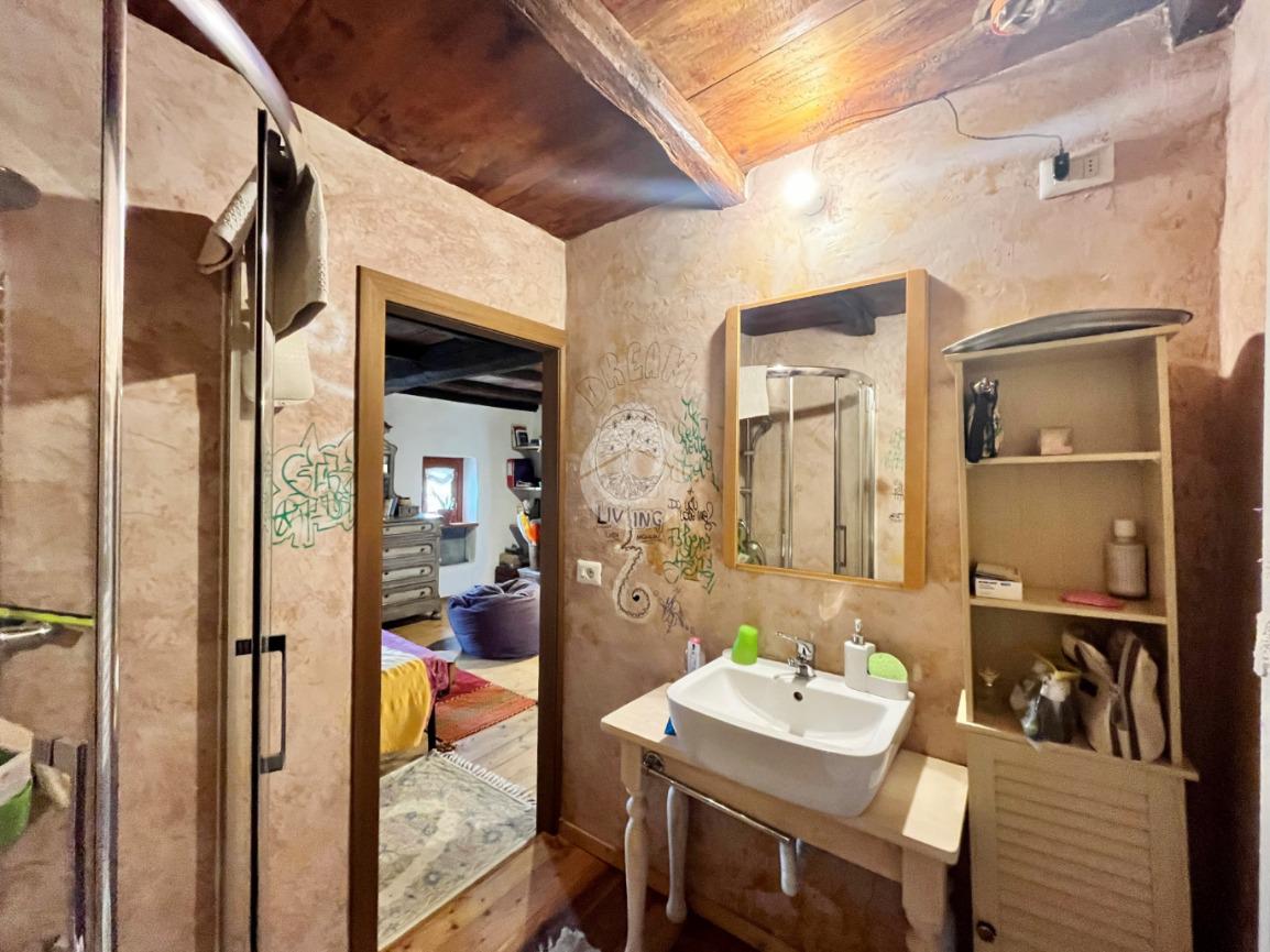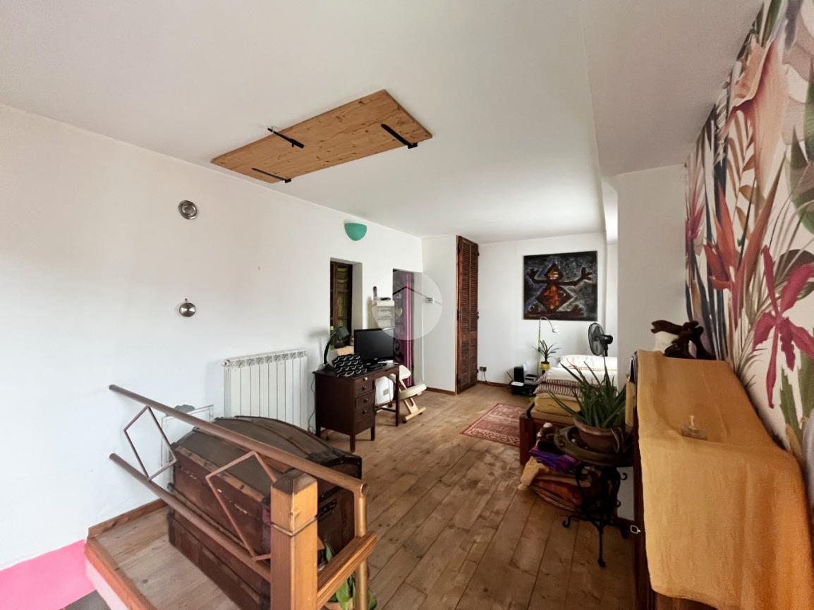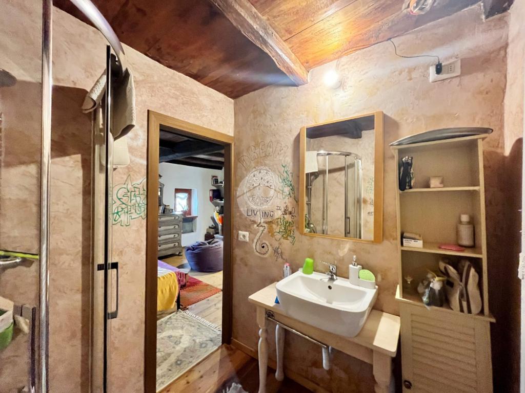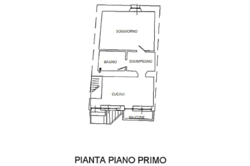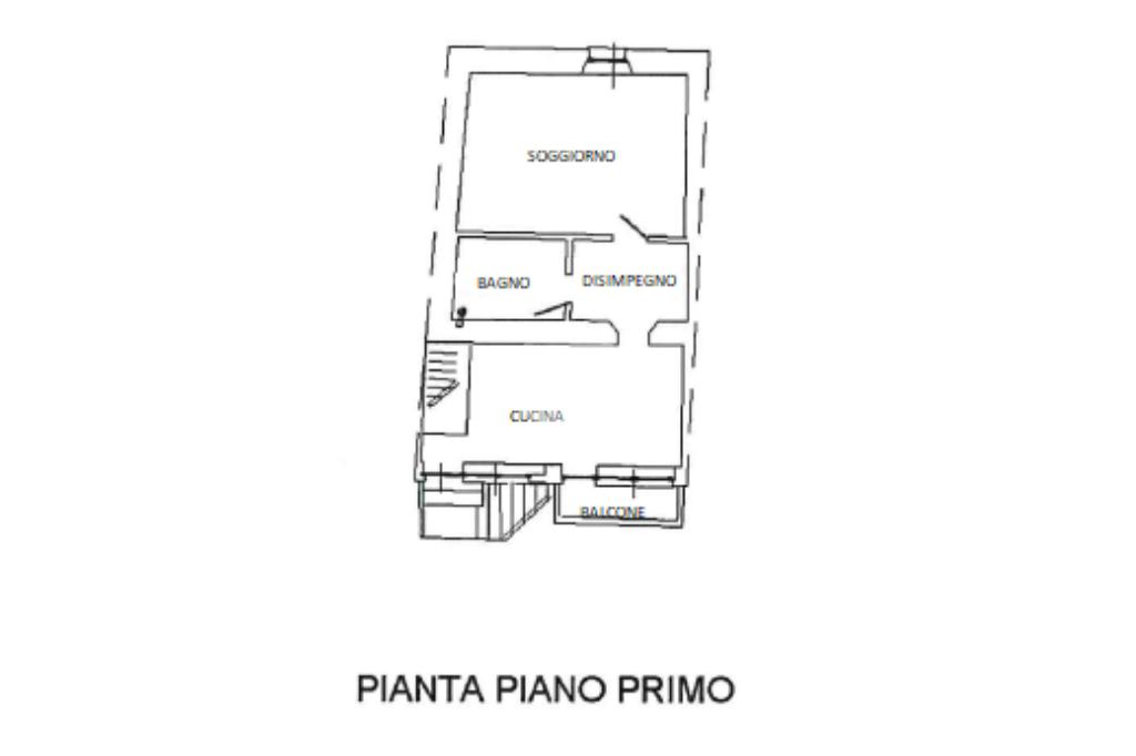 L’abitazione principale si sviluppa al primo piano, con accesso tramite scala esterna che conduce ad una spaziosa cucina abitabile con uscita diretta sul balcone. Un comodo disimpegno porta al soggiorno e al bagno. Tramite scala interna si accede al piano superiore, dove troviamo un ulteriore disimpegno, perfetto come seconda camera o studio, anch’esso con accesso al balcone, che accompagna alla camera matrimoniale dotata di bagno privato.